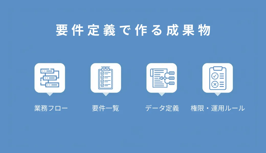 要件定義の成果物は、後工程の“地図”です。最低限、次が揃うと強いです。